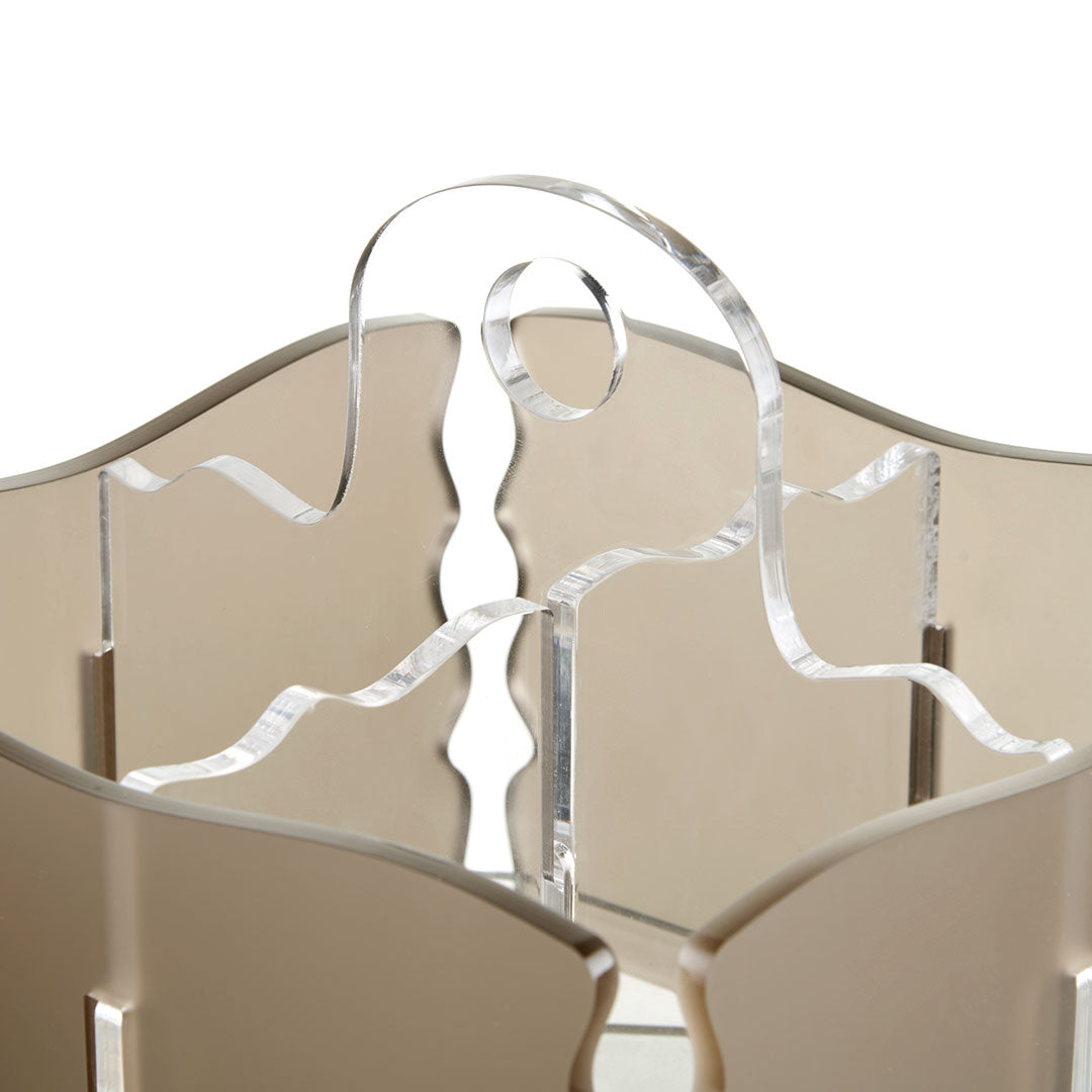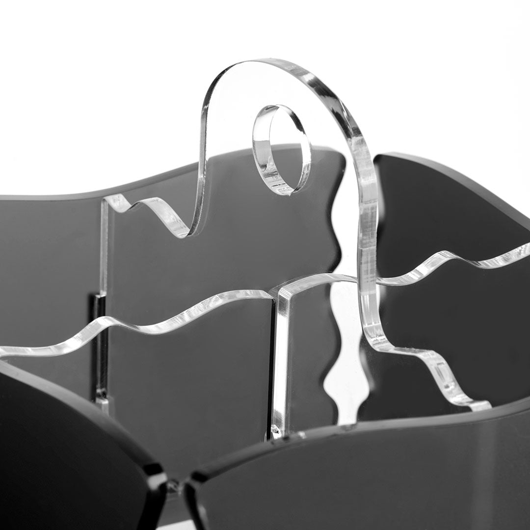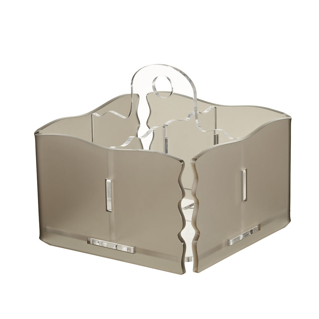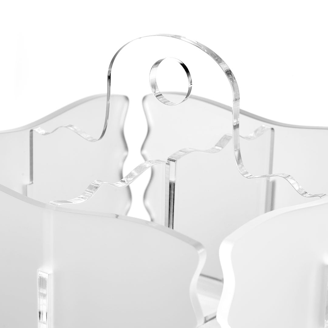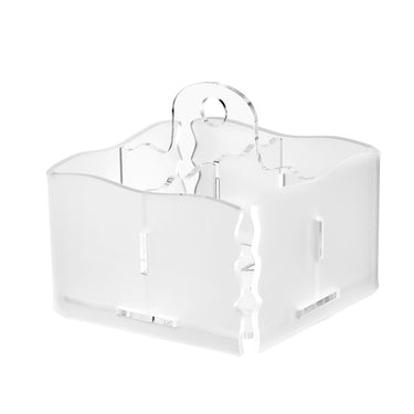Contenitore porta posate a 4 spazi. Utile per servire a tavola le posate o in cucina per contenere quelle lavate. Realizzato in metacrilato colato satinato dallo spessore di 5 mm. La forma viene poi data con la tecnica della piegatura e incollaggio.